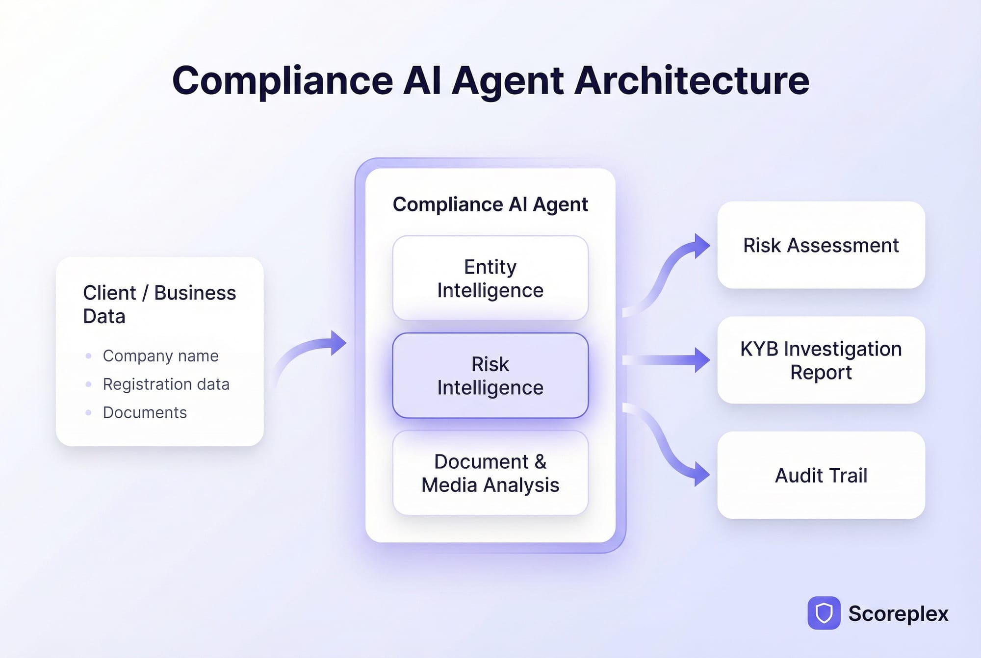Scoreplex is an AI-powered KYB (Know Your Business) coworker that automates customer due diligence, reduces false positives, streamlines document verification, and generates comprehensive risk reports.